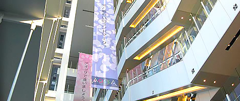 AOSSAアトリウムは吹き抜けの空間です。1F・8Fのアトリウムは無料でご利用(非営利目的の場合)できます。
